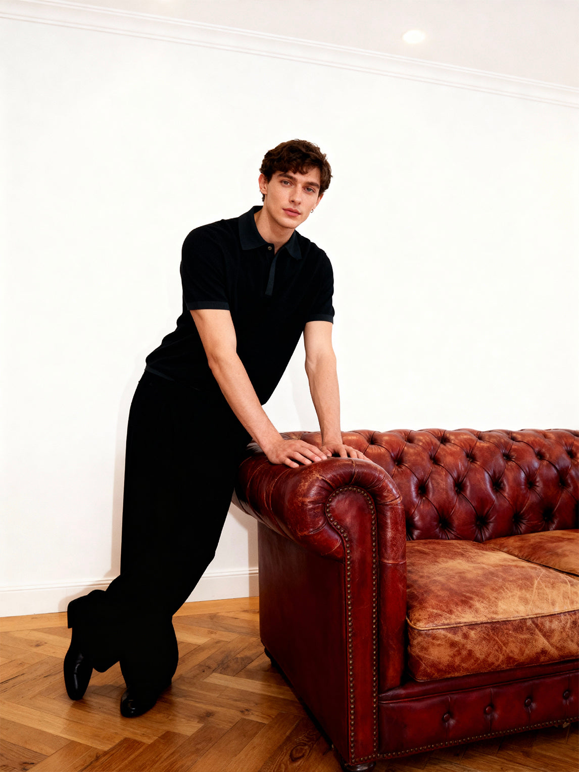 Crafted for breathable comfort and a refined look, this polo features a unique textured knit pattern and a classic collar. Tailored for a relaxed, polished silhouette that transitions effortlessly from day to night.