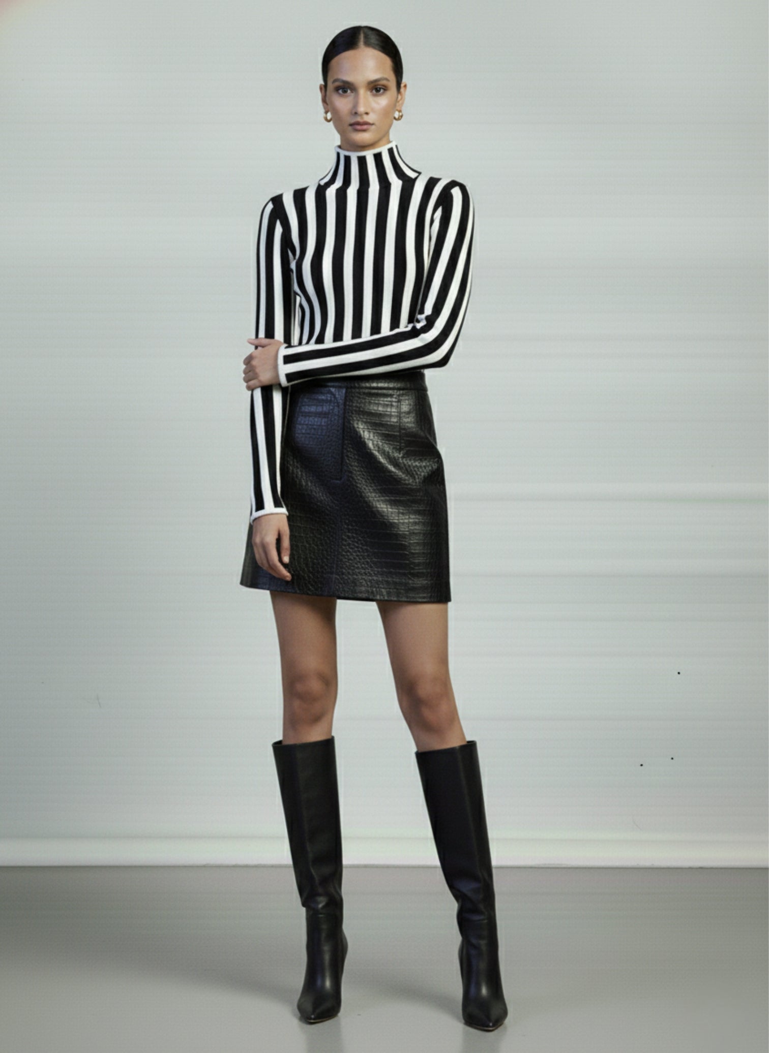Our Adam turtleneck sweater features bold stripes, drop shoulders, and rib-knit trim..