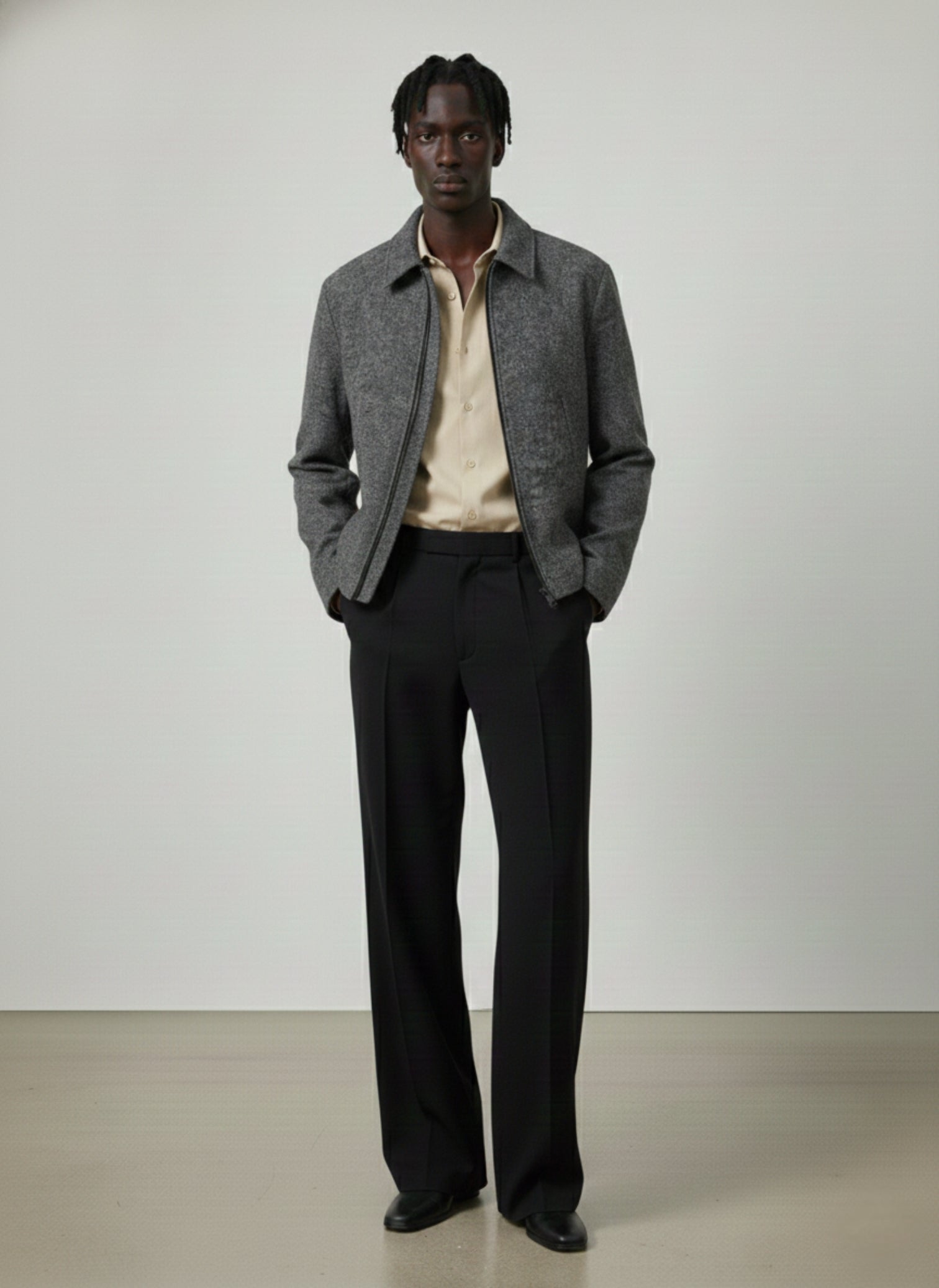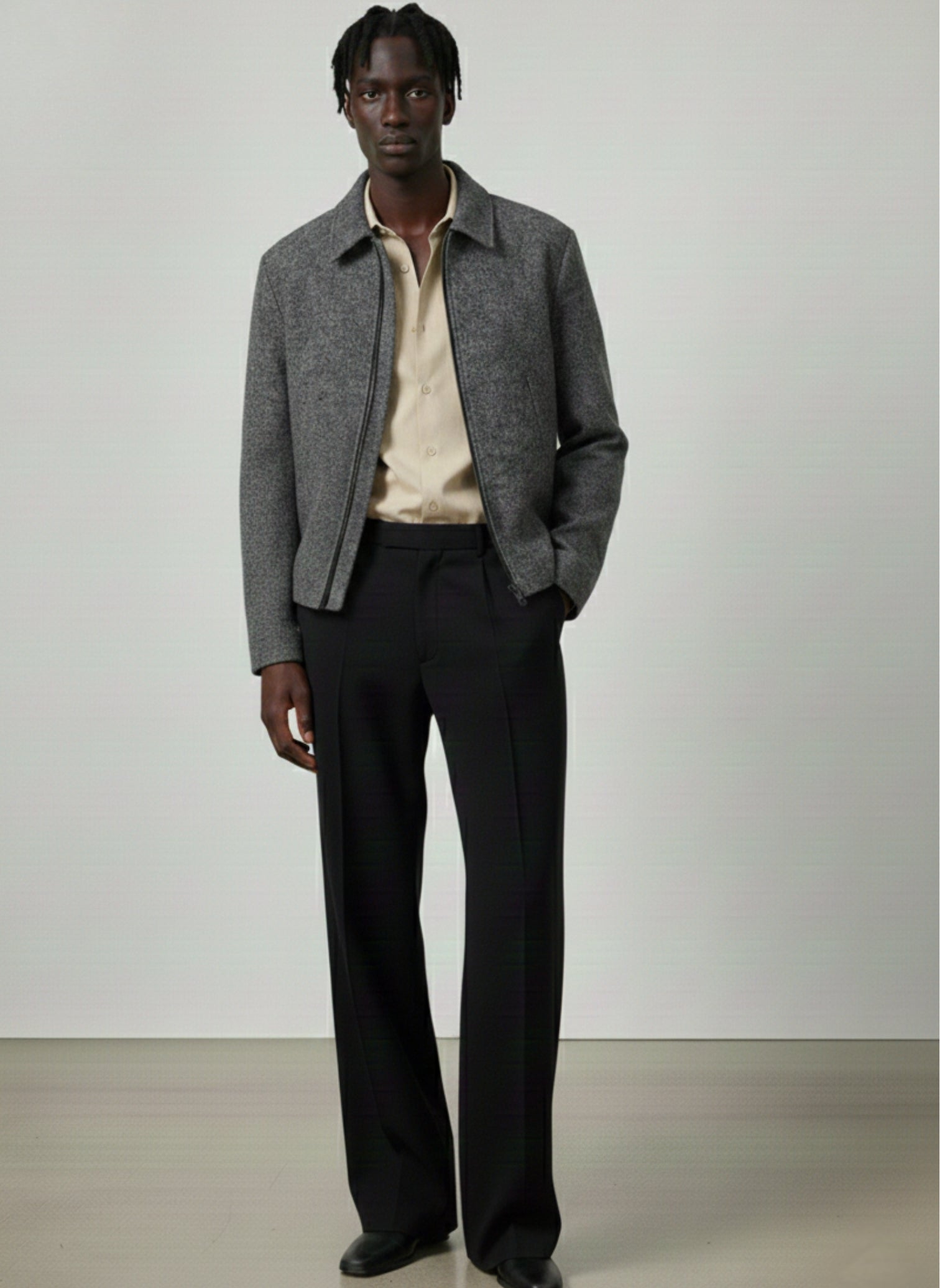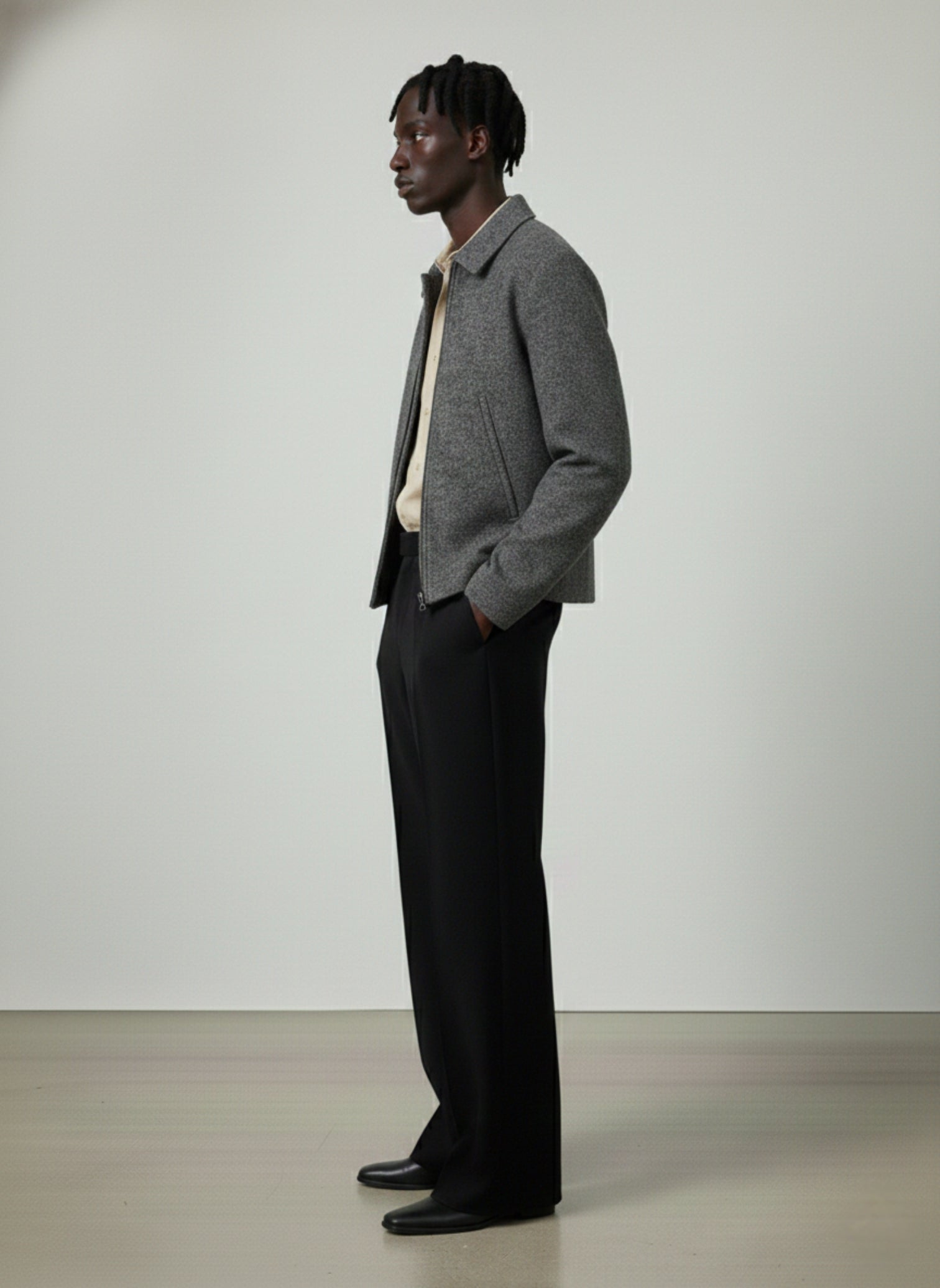 Our Waris jacket features a spread collar, button cuffs, and side welt pockets. Crafted in a blend of wool, this style offers an elevated look.
