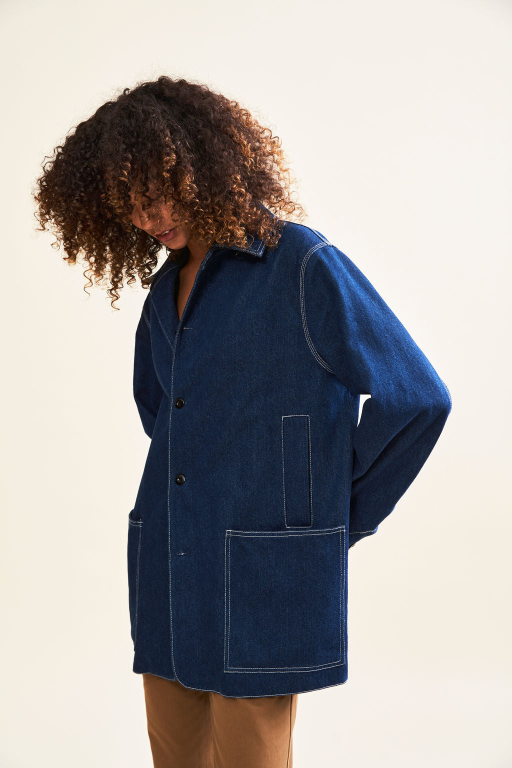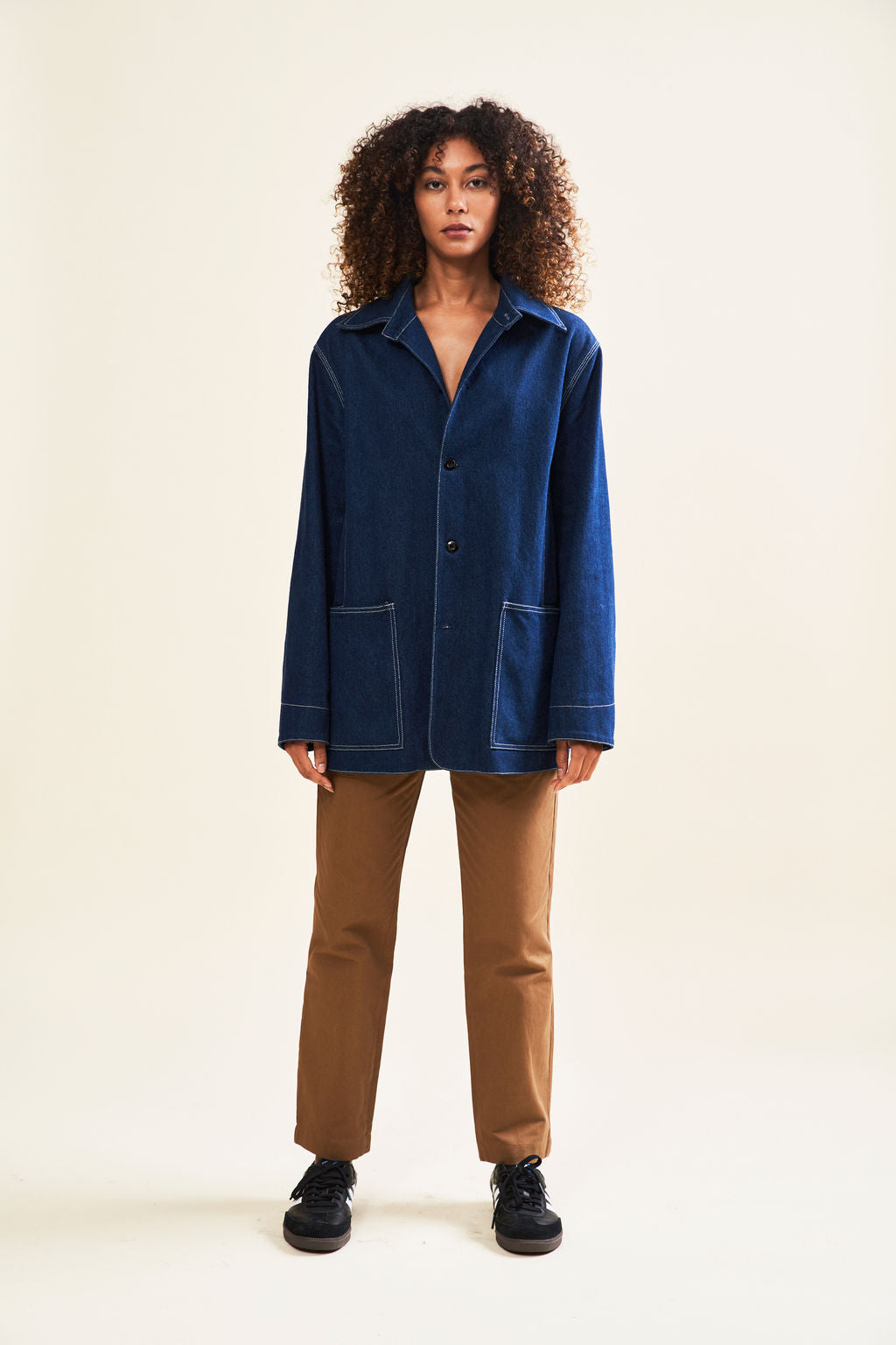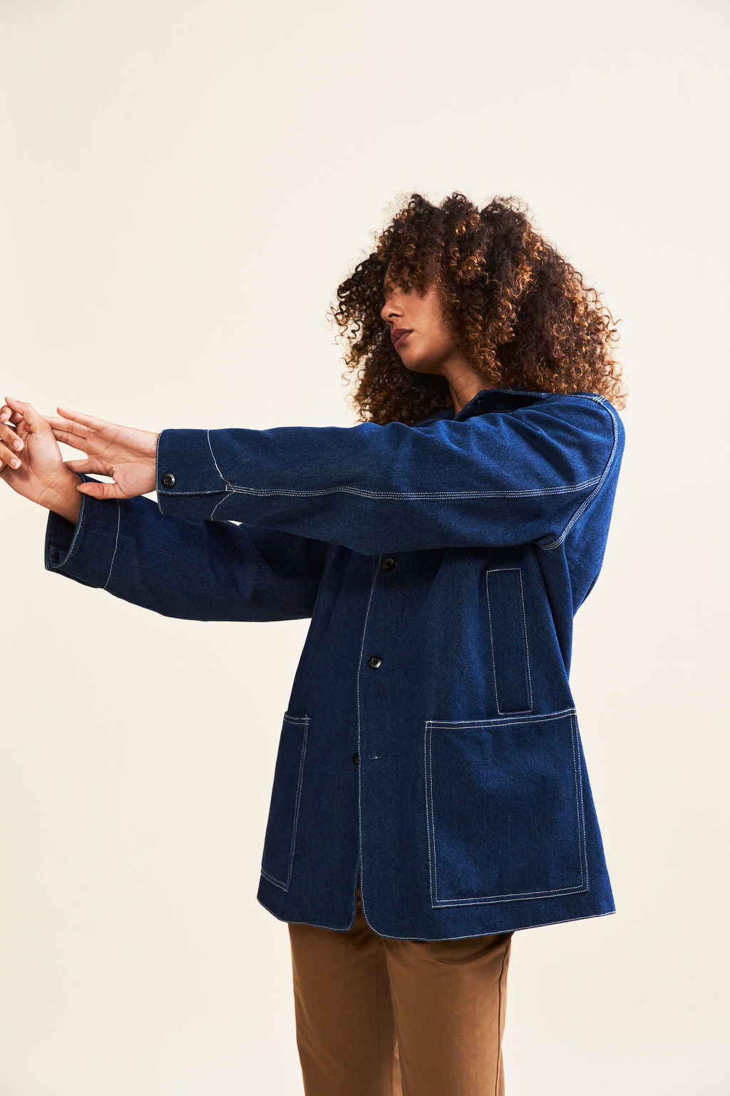 Our take on the denim chore jacket made from extremely soft, compact, Japanese cotton denim. It features workwear-inspired details and a relaxed fit. The exclusive, meticulously crafted fabric and lightly padded cashmere-jersey lining guarantee maximum comfort and warmth.