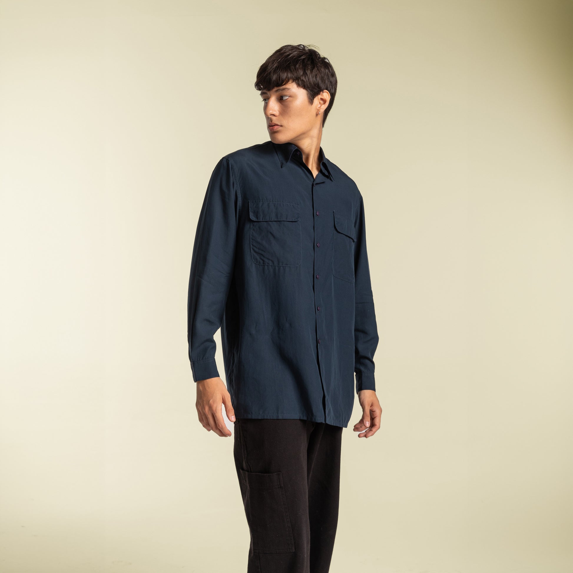 The Luwah button-front shirt is styled with a pointed collar, chest flap pockets, and a regular fit.