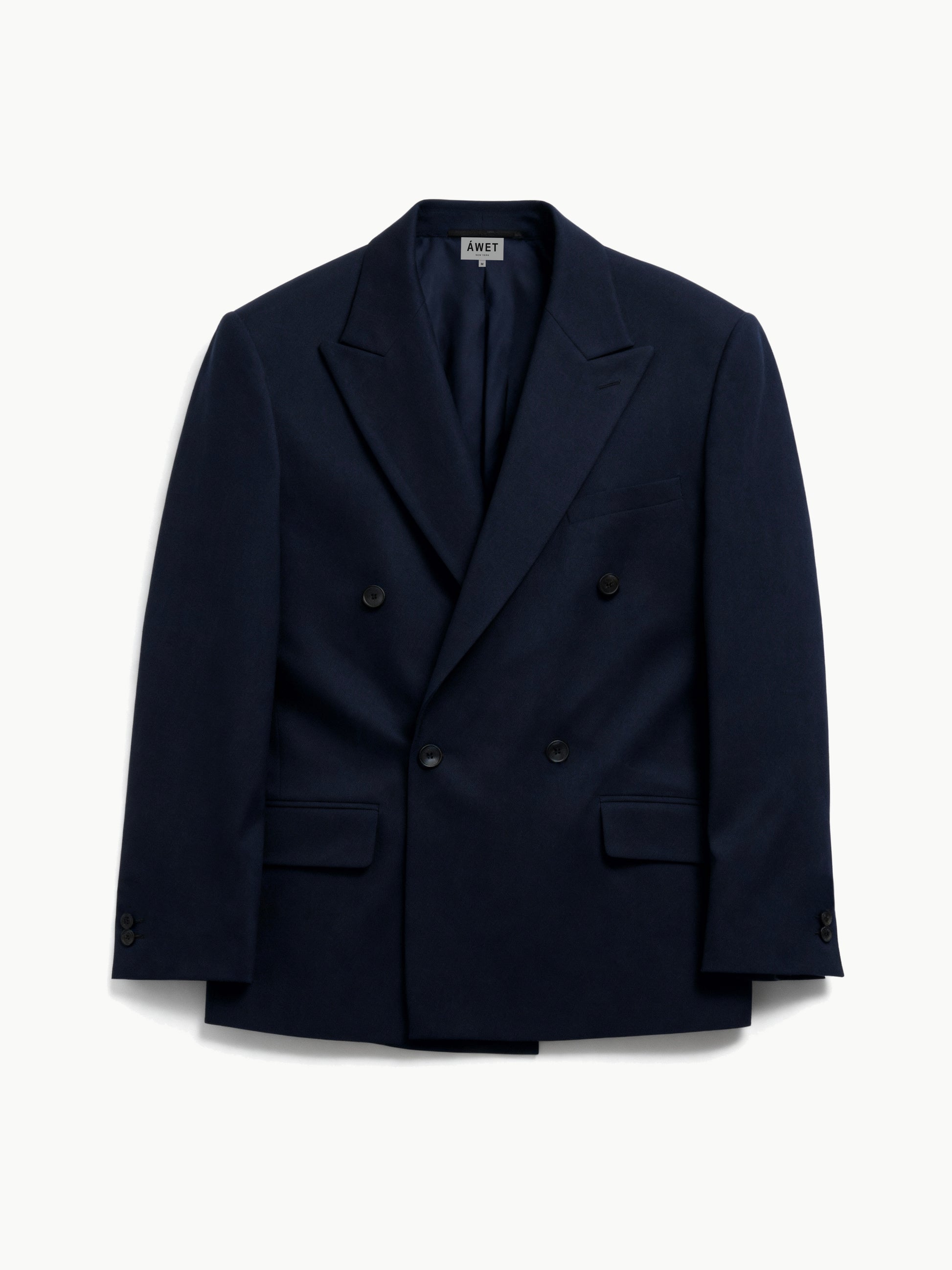 Our double-breasted suit jacket is cut with a relaxed yet commanding silhouette in a deep Midnight Navy hue. It features classic notch lapels, two front patch pockets, and a modern, straight hem. Pair with the Karan Trouser for a full look.