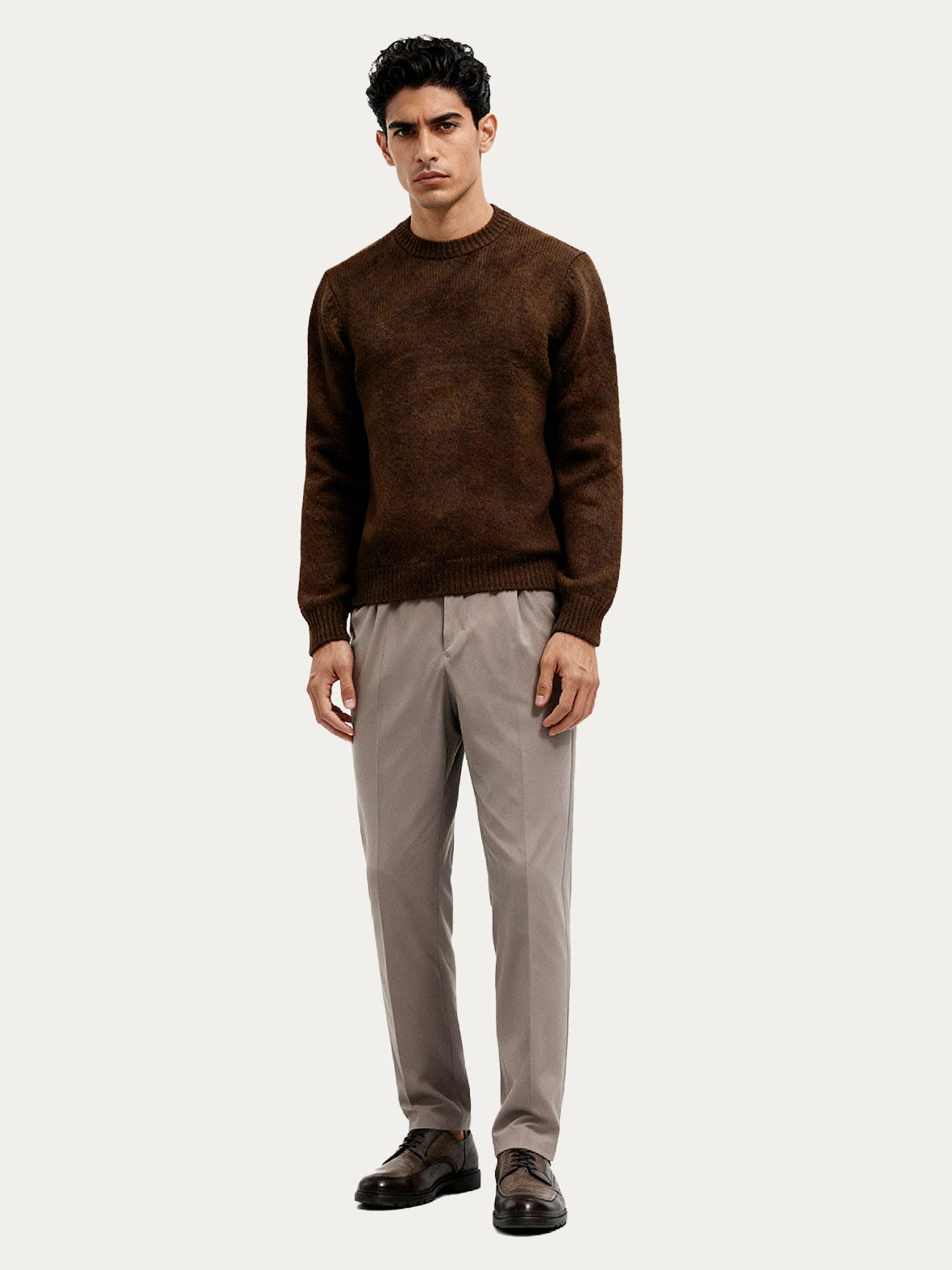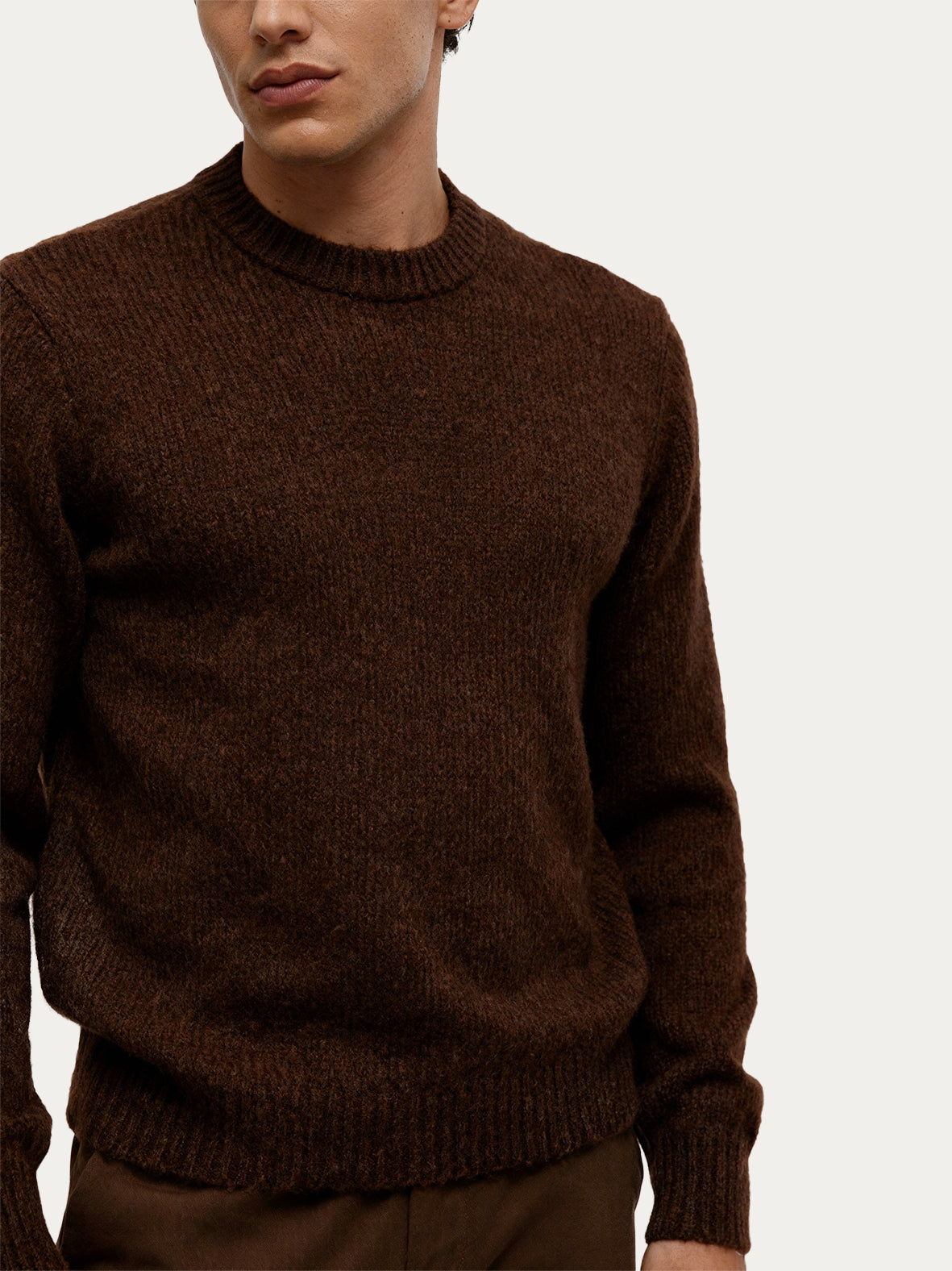 This classic crewneck silhouette ensures versatility, while the luxurious texture provides a depth that elevates any ensemble. It is the perfect investment for structured, everyday elegance.