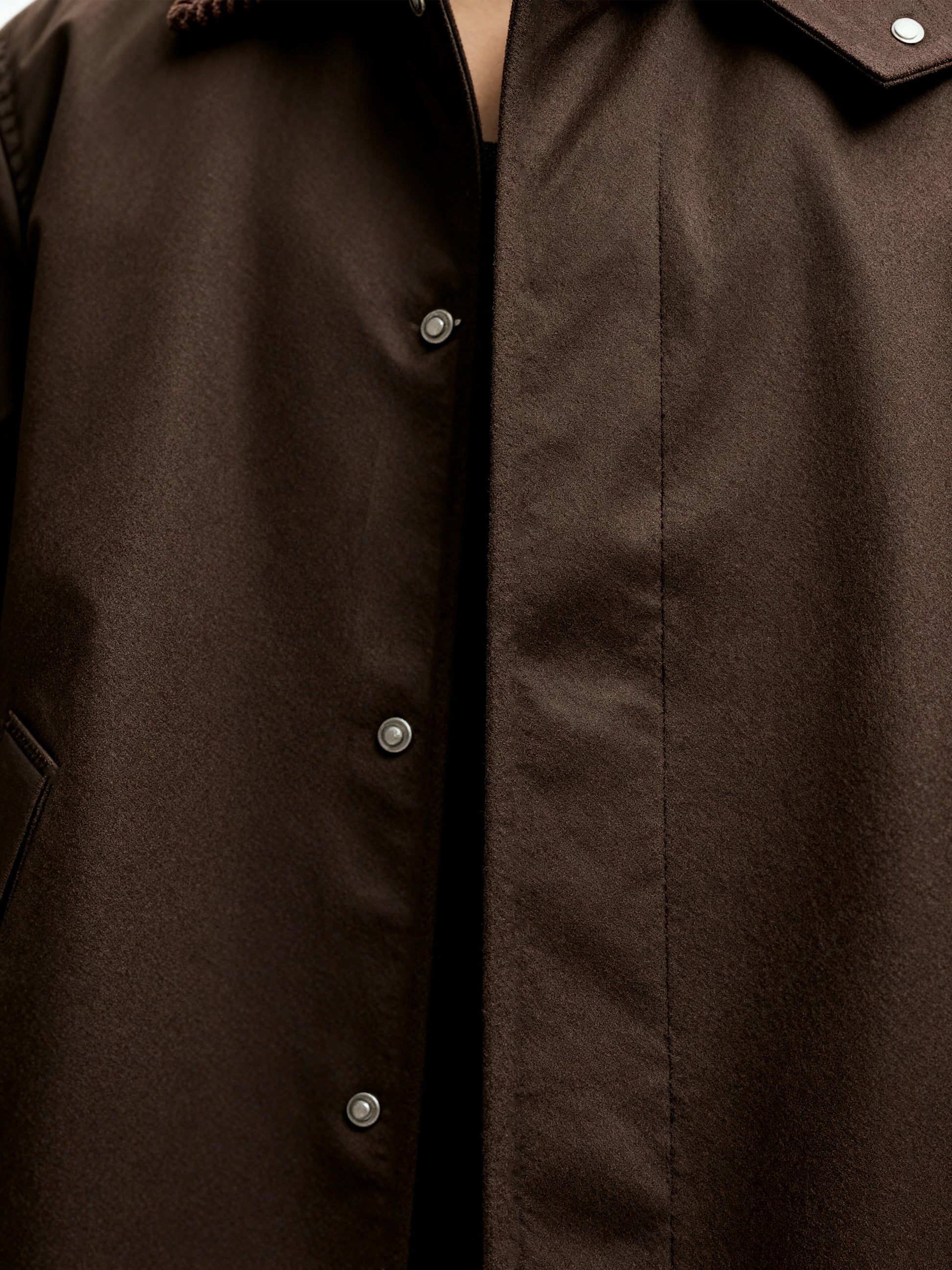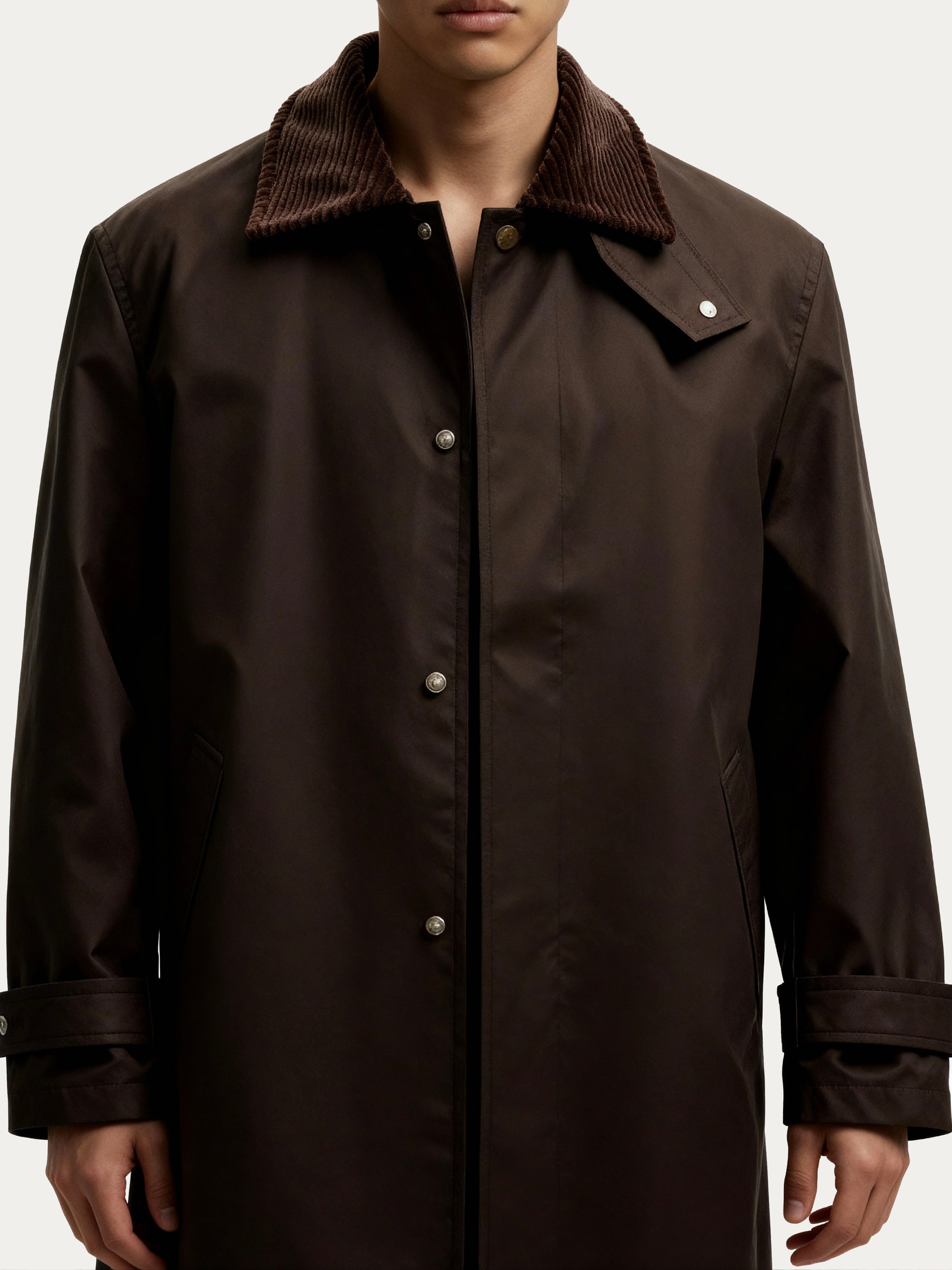 A meticulously tailored overcoat defined by its sharp silhouette and confident structure. The essential layer for the modern wardrobe, built for enduring authority.