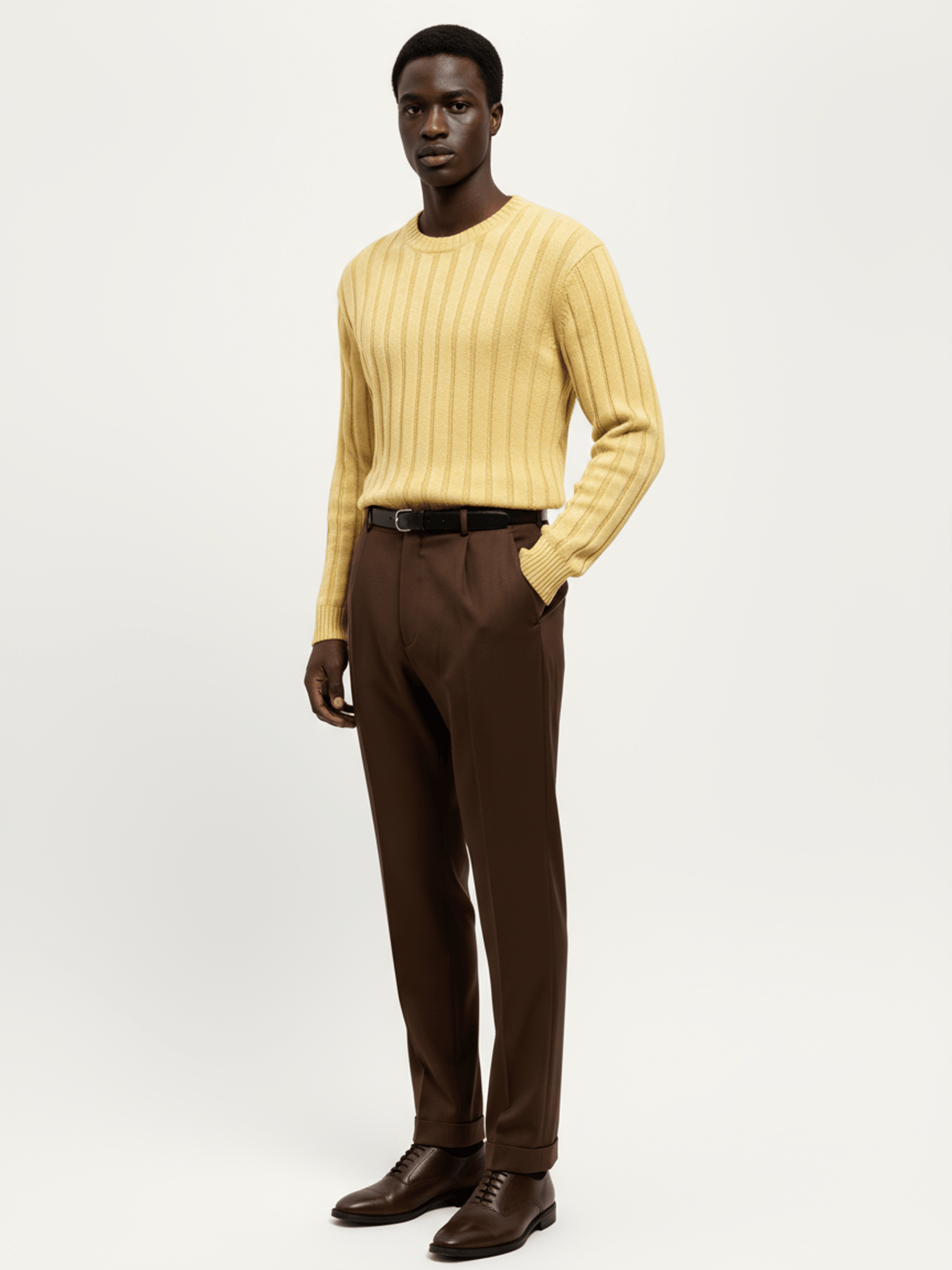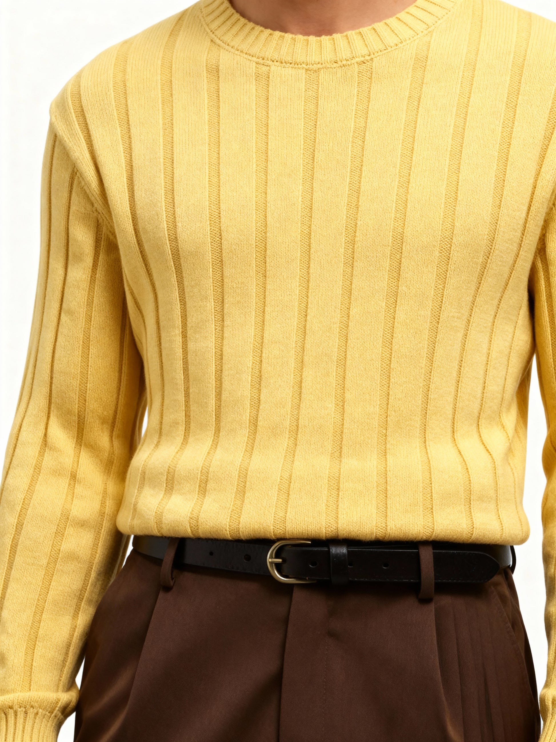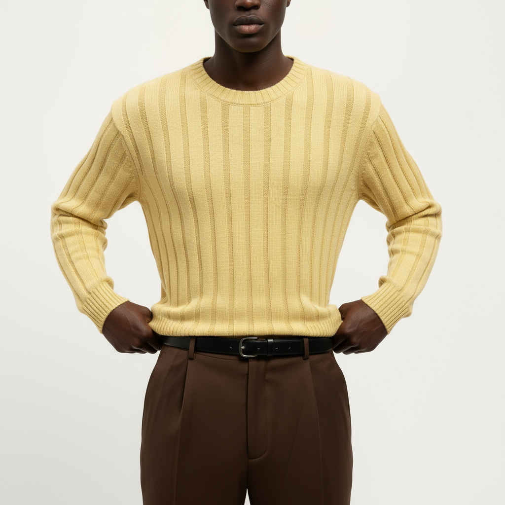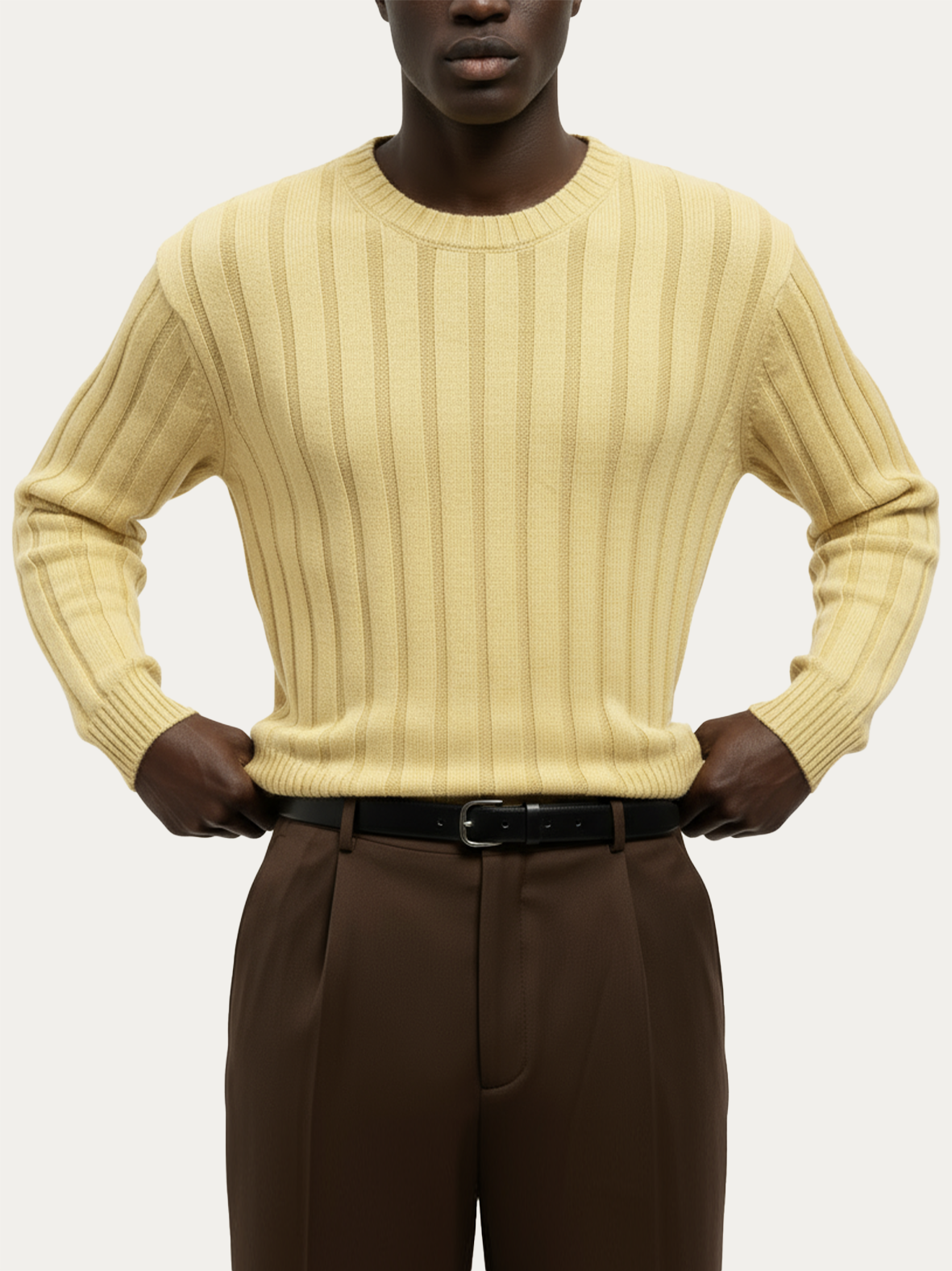 Crafted in a soft Italian wool blend, this ribbed crewneck sweater balances structure and ease. Its clean lines and rich texture bring quiet sophistication to any look—pair it with tailored trousers for a composed look or denim for everyday refinement.