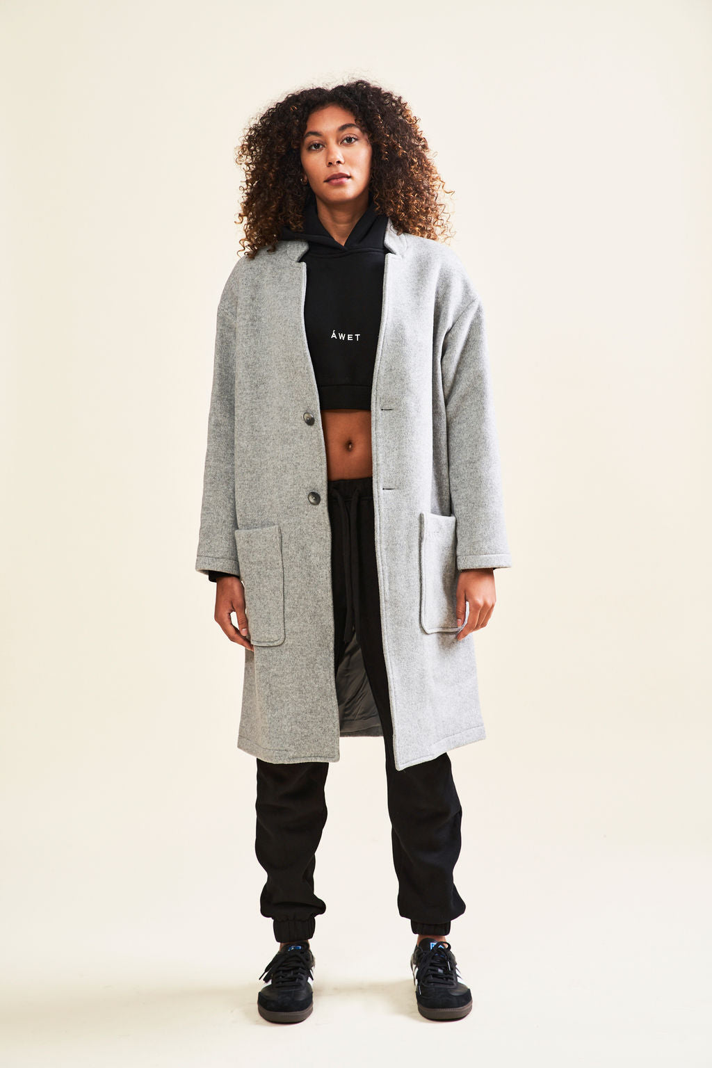 Our St. Urbain coat boasts a standing collar with notched cutouts. Crafted of wool and cashmere, this piece fastens with button-front closures and showcases side patch pockets with an oversized fit.