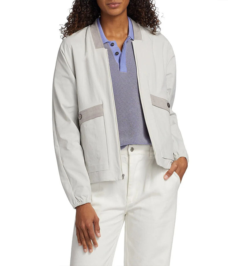 The Yodit track jacket is crafted of a nylon stretch fabrication.
